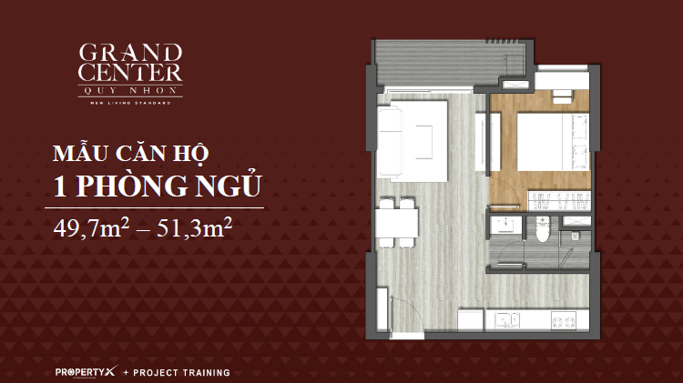 Căn hộ 1 phòng ngủ tại dự án Grand Center Quy Nhơn có diện tích 50m2 , được thiết kế hợp lý, tối đa hoá công năng sử dụng trên mỗi thiết bị, nội thất, chất liệu, nhằm đảm bảo cho chủ sở hữu cảm nhận được sự thoả mái, thư giản nhất . Các căn hộ có tầm nhìn hướng biển hoặc bao trọn toàn cảnh thành phố rộng lớn gần gũi với thiên nhiên nhưng không xa rời cuộc sống tiện nghi hiện đại.